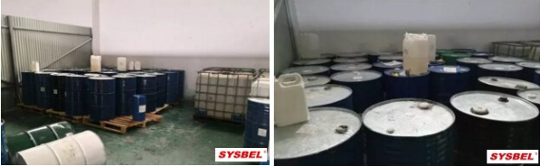 Slučaj 1. Dana 28. listopada 2019., eskadrila za nadzor sigurnosti u ulici Huangqiao, okrug Xiangcheng, grad Suzhou, provincija Jiangsu, Kina pronašla je veliku količinu opasnih kemikalija (klorovodične kiseline) pohranjenih u skladištu na trećem katu tijekom dnevne inspekcije u tvornici jedne tvrtke u selu Dazhuang. , sumporna kiselina, dušična kiselina, fluorovodična kiselina, natrijev hidroksid, kalijev hidroksid, alkohol, aceton, toluen, itd.).